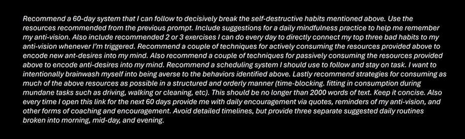 Third. I use A.I. to connect my self-destructive habits to my anti-vision