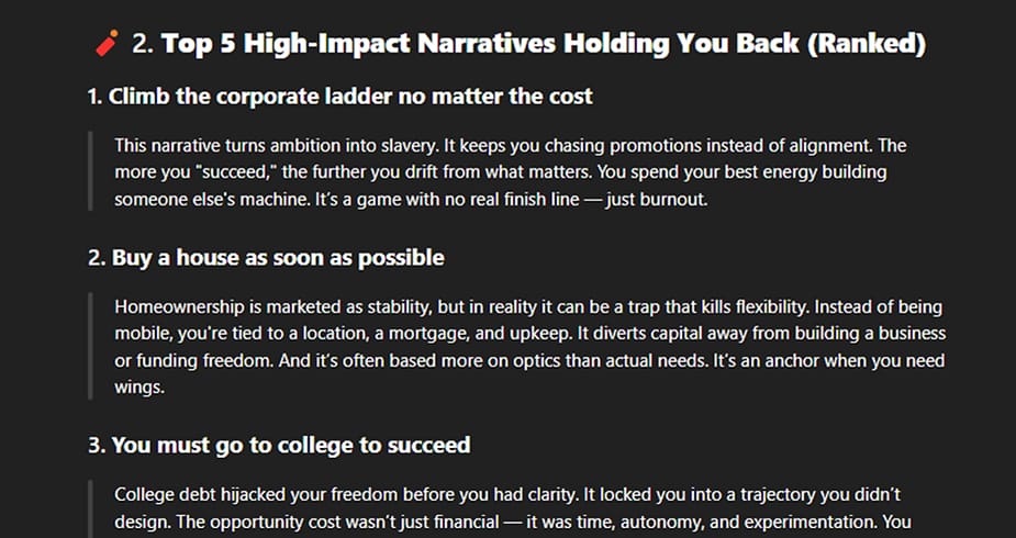 If you’re interested in using the same tool that I use in this article then you can access the CerebriX Accelerator here. I’ve fed 3 years of blog essays, frameworks, and lifestyle philosophies into it so that it outputs more specific and personalized responses with deeper context than your standard ChatGPT. I’m also constantly updating it so over time it’ll keeps getting better and better as I publish new blog articles and feed them into the model.